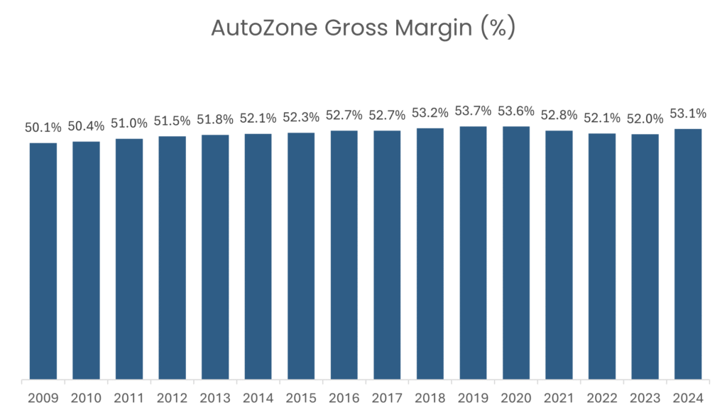 Combined with high-margin private label products and strong customer service, AutoZone’s scale helps solidify its market dominance and supports consistently high and stable gross margins.