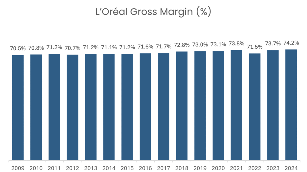 L’Oréal’s global brand recognition helps it sustain gross margins above 70% across diverse market segments — a clear sign of pricing power and product stickiness.